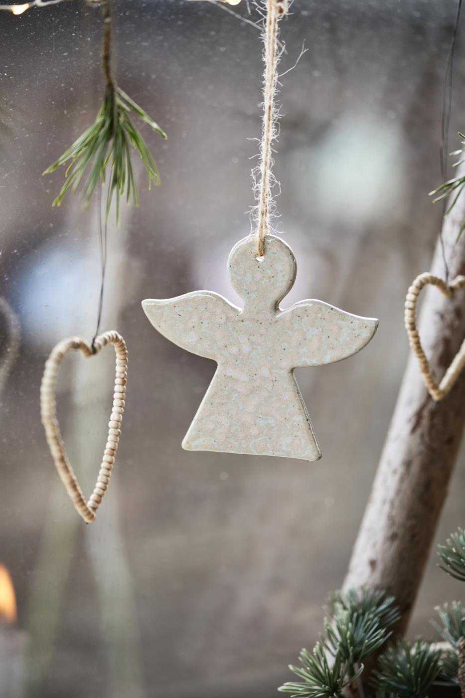 Rustic hanging ceramic decoration in the shape of an angel. This simple decoration will add a natural, nordic feel to your Christmas decor.