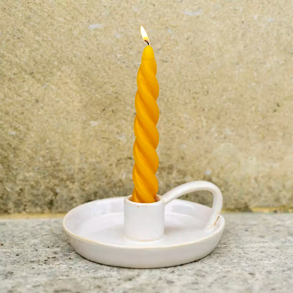 Create a cosy atmosphere in your home with this versatile ceramic candle holder. Whether placed on dining tables, mantels, or as a decorative accent in living rooms and bedrooms, it adds a layer of sophistication to any décor style. The durable construction ensures long-lasting beauty and practicality, while the reactive glaze finish adds a touch of elegance. Crafted with expert care, this Stoneware Candle Holder is a must-have for anyone looking to elevate their home décor. Its organic finish and rustic charm make it a perfect addition to any space, bringing warmth and style to your living areas. No matter the occasion, this candle holder is sure to impress with its timeless design and high-quality craftsmanship. Made from high-quality stoneware, it features a unique, hand-applied glaze for a one-of-a-kind finish. The classic design and sturdy handle make it both functional and stylish, perfect for holding standard dinner candles.